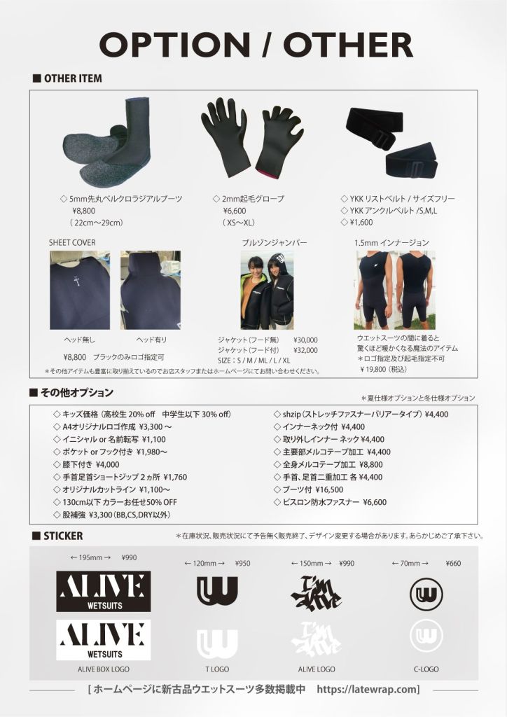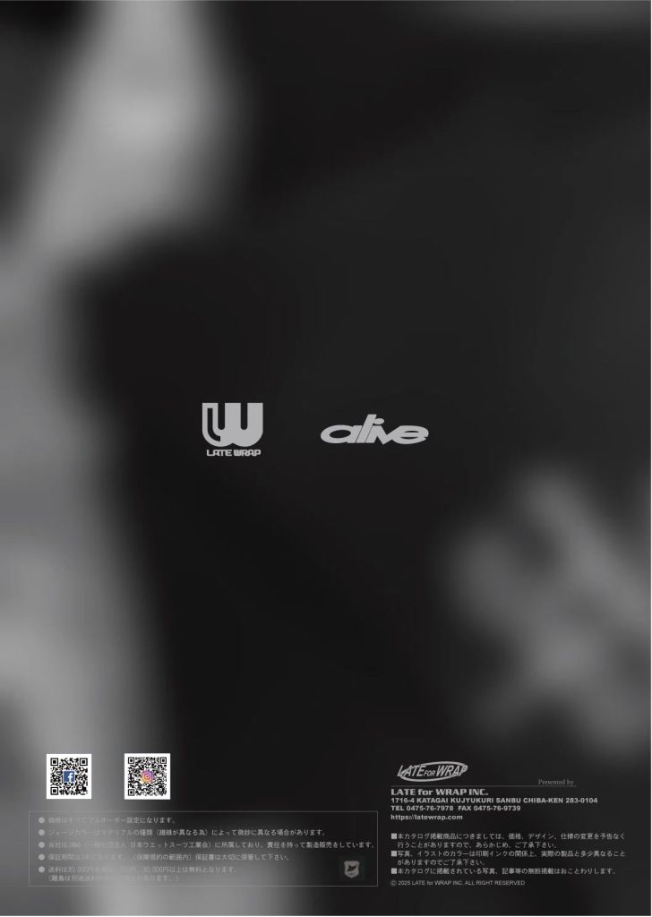 2025 冬カタログ 投稿者:レイトフォーラップ5 9月 20255 9月 2025カテゴリー:レイトフォーラップカタログタグ:ALIVEWETSUITS、ウエットスーツ、カタログ、サーフィン、レイトフォーラップ、レイトラップ、lateforwrap、LATEWRAP お待たせ致しました。 スタッフ一同心よりオーダーお待ちしています。 関連